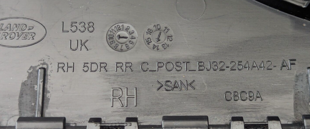 • RANGE ROVER EVOQUE L538 11-2015 REAR RIGHT O/S DOOR C PILLAR TRIM BJ32-254A42-AF
